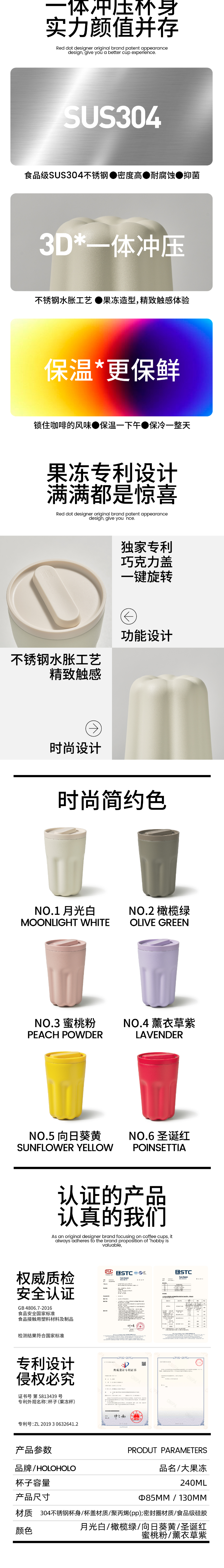 首頁 > 全部禮品 > 水具禮品 > 保溫杯 > holoholo果凍保溫杯女咖啡隨行杯不銹鋼便攜外帶高顏值大肚杯子