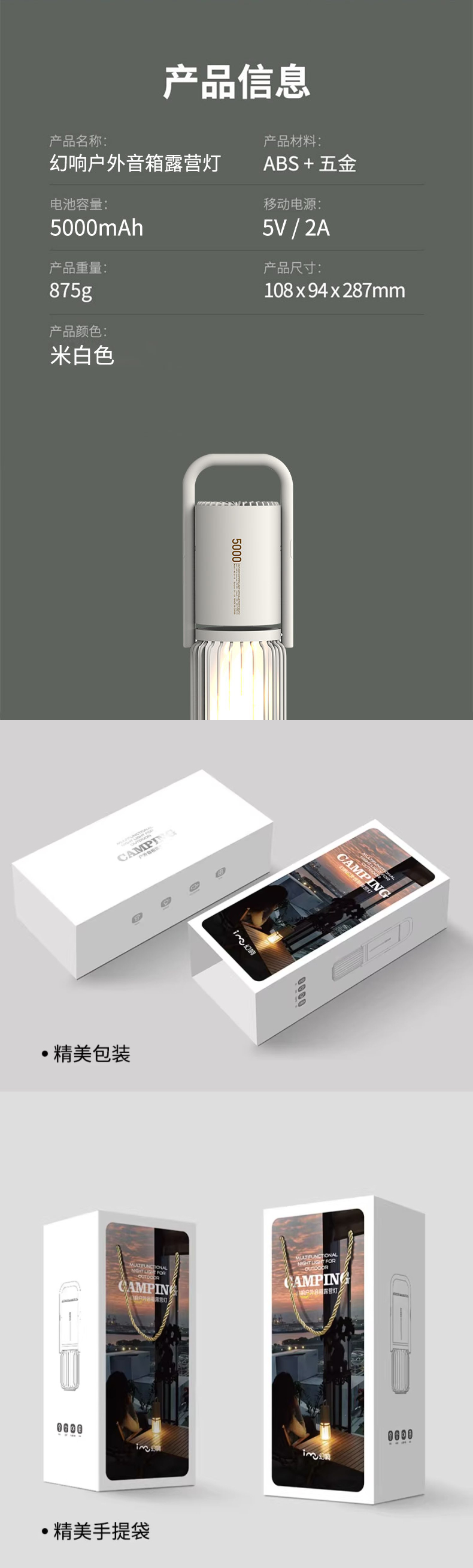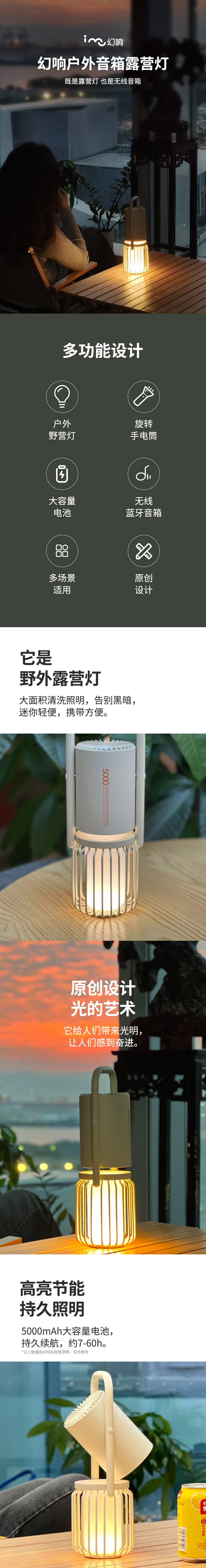 • 幻響露營(yíng)燈藍(lán)牙音響無(wú)線音箱手電筒充電寶戶外照明野營(yíng)氛圍帳篷燈