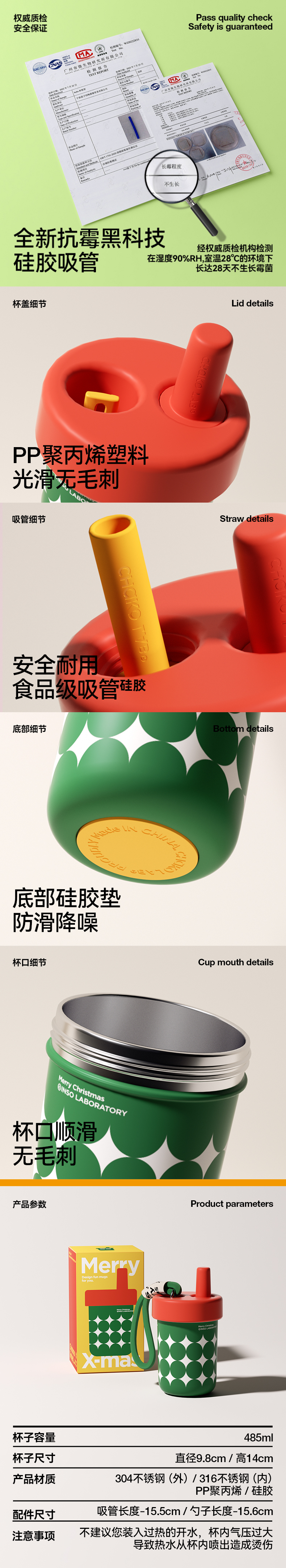 chakolab圣誕季送禮吸管杯保溫杯女不銹鋼水杯子可愛高顏值bobo杯