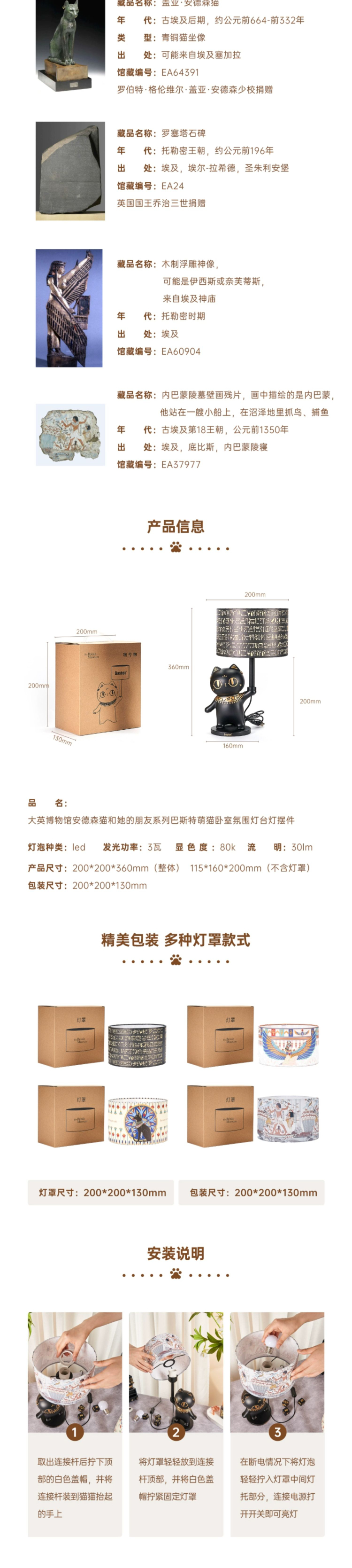 • 大英博物館安德森貓家居臺燈床頭燈小夜燈擺件女生閨蜜生日禮物
