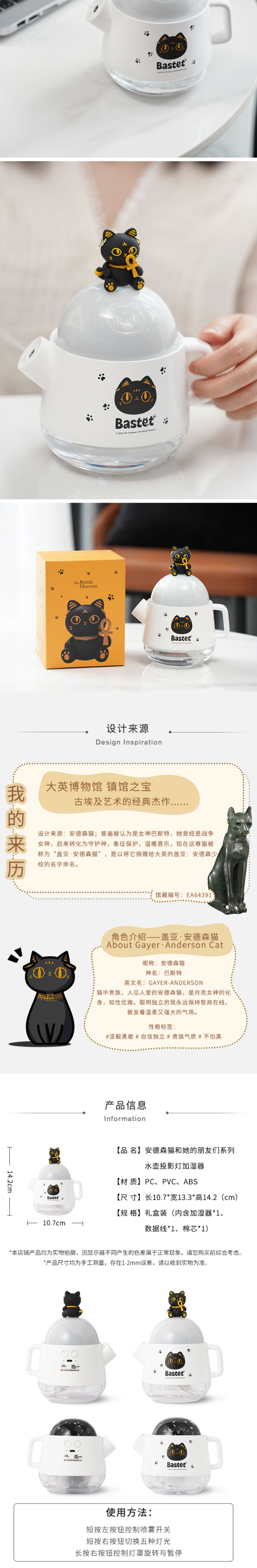 • 大英博物館安德森貓星空投影燈加濕器家居香薰機(jī)男生日禮物女禮品