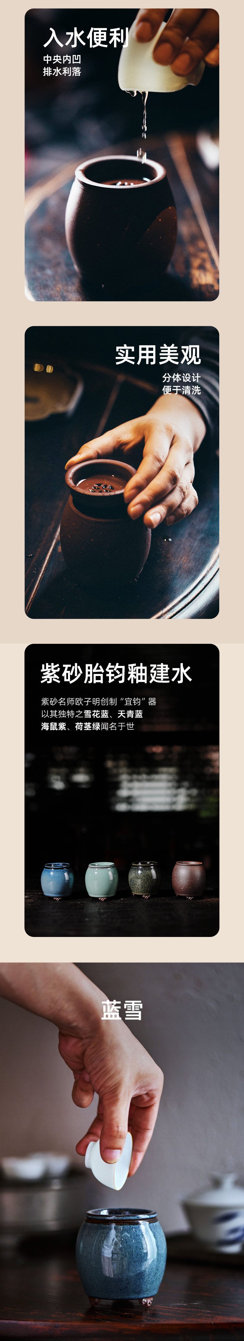 首頁 > 全部禮品 > 水具禮品 > 茶具套裝 > 學古|紫砂建水 秋桂/藍雪/海鼠/荷莖綠宜興紫砂胎爐鈞釉小渣斗