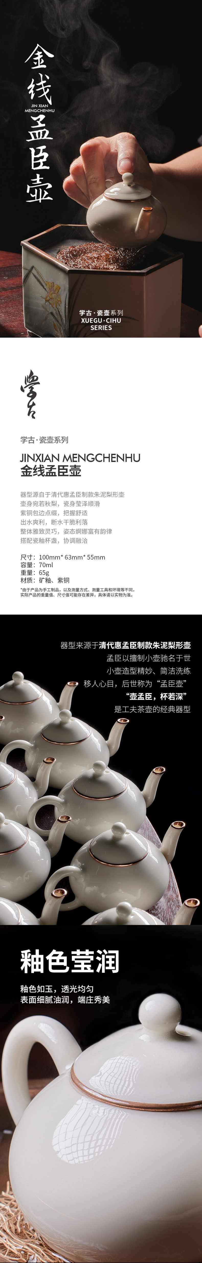 首頁(yè) > 全部禮品 > 水具禮品 > 茶具套裝 > 學(xué)古|金線孟臣?jí)?陶瓷壺紫銅包邊梨形壺工夫茶器
