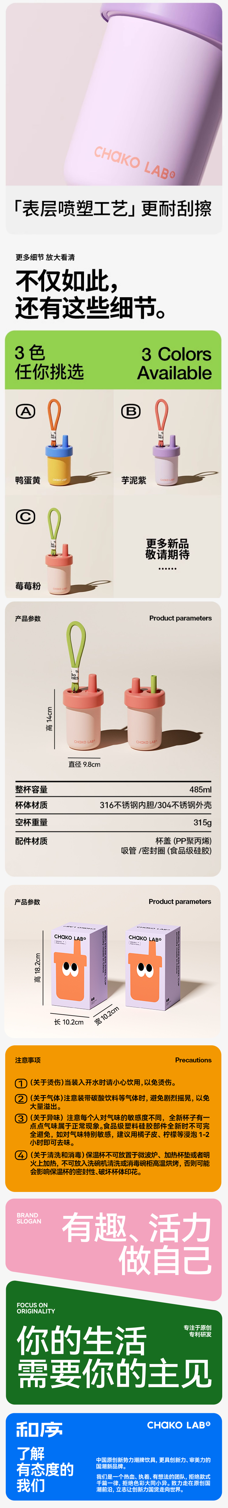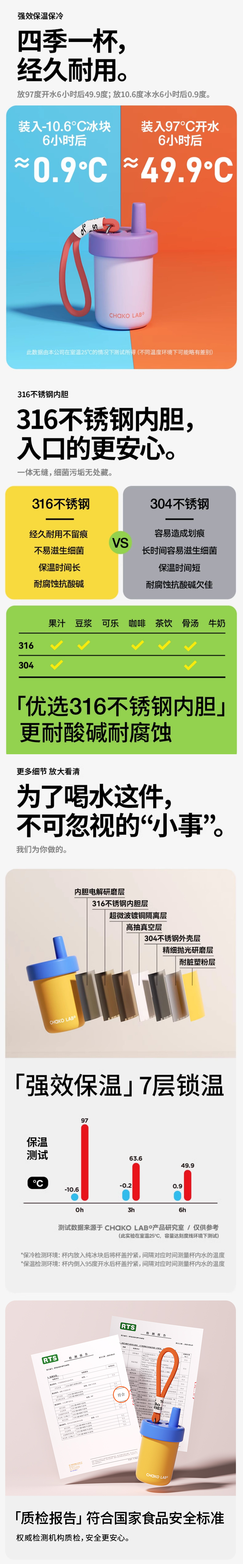 chakolab隨行吸管杯保溫杯不銹鋼大容量水杯子2023新款bobo杯