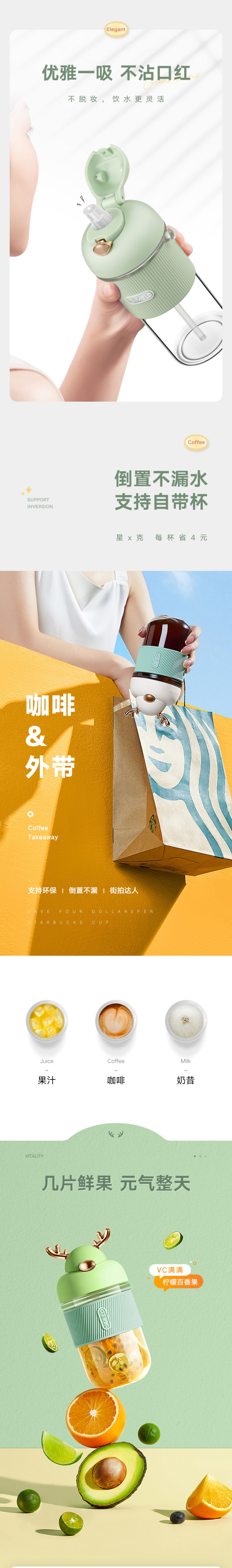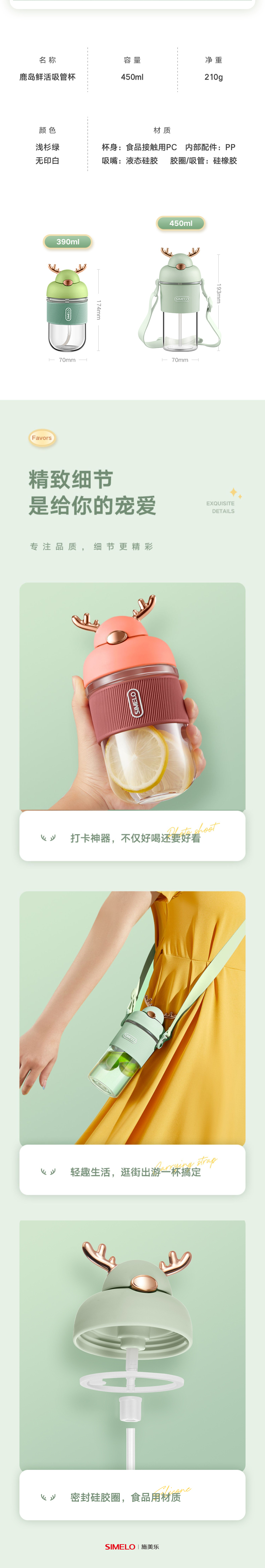 • simelo咖啡杯隨行便攜辦公室水杯女隨身杯家用杯子男士玻璃吸管杯