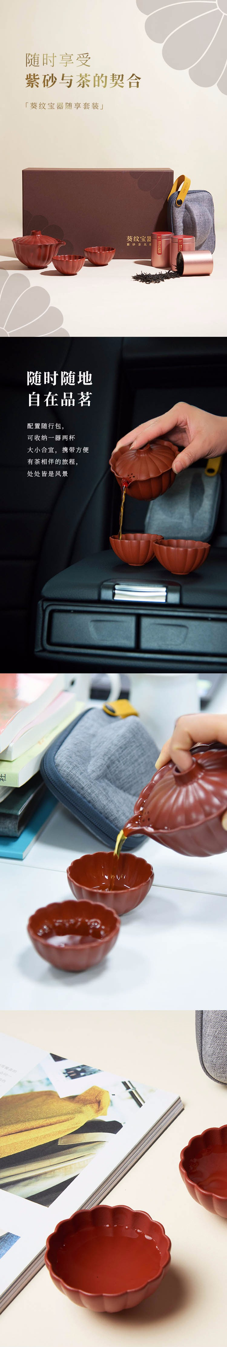 • 清樸堂葵紋寶器隨享套裝紫砂便攜茶具花香小種紅茶組合隨身茶具定制禮品
