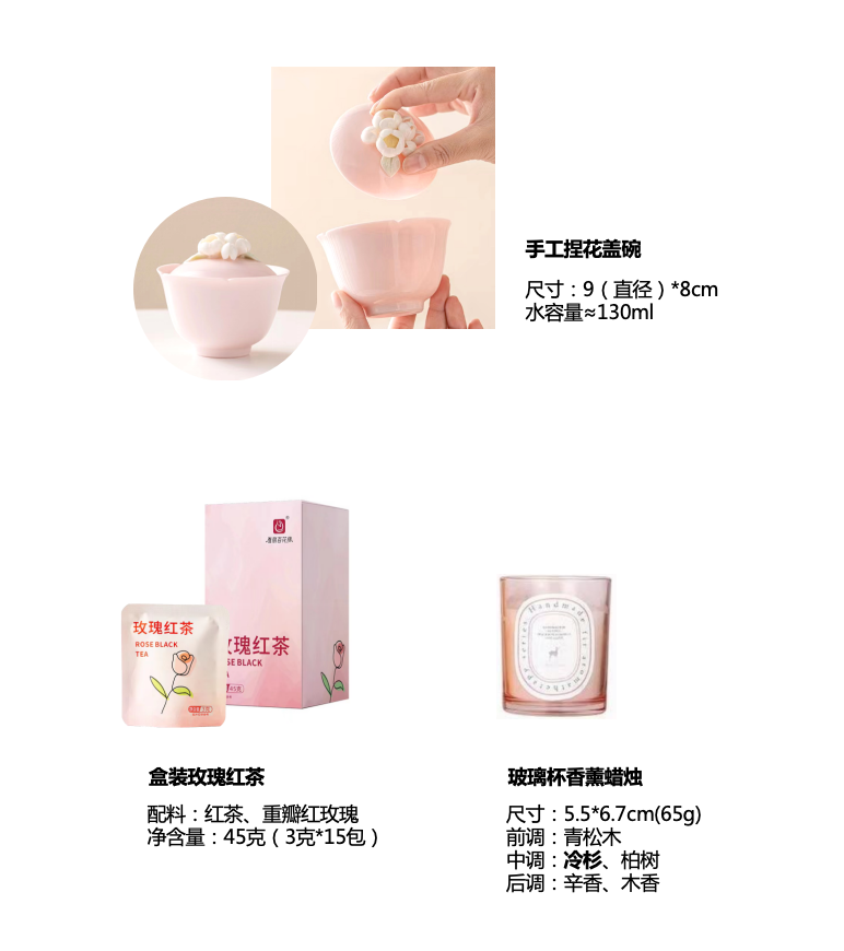 • 做自己的花手工捏花蓋碗盒裝玫瑰紅茶玻璃杯香薰蠟燭