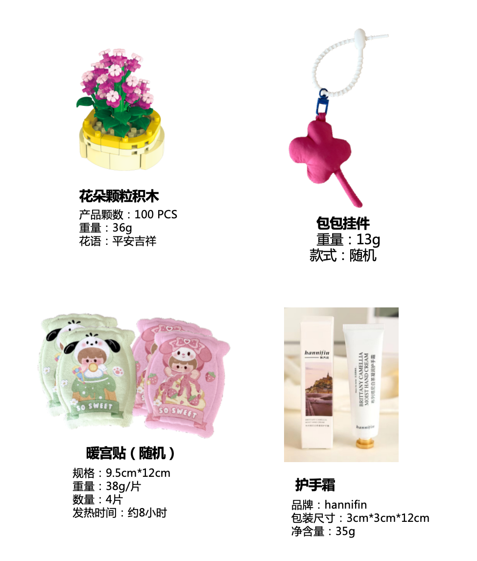 首頁 > 全部禮品 > 通用禮盒/包裝盒 > 忙著可愛針織手袋花朵掛件花朵積木護(hù)手霜暖宮貼