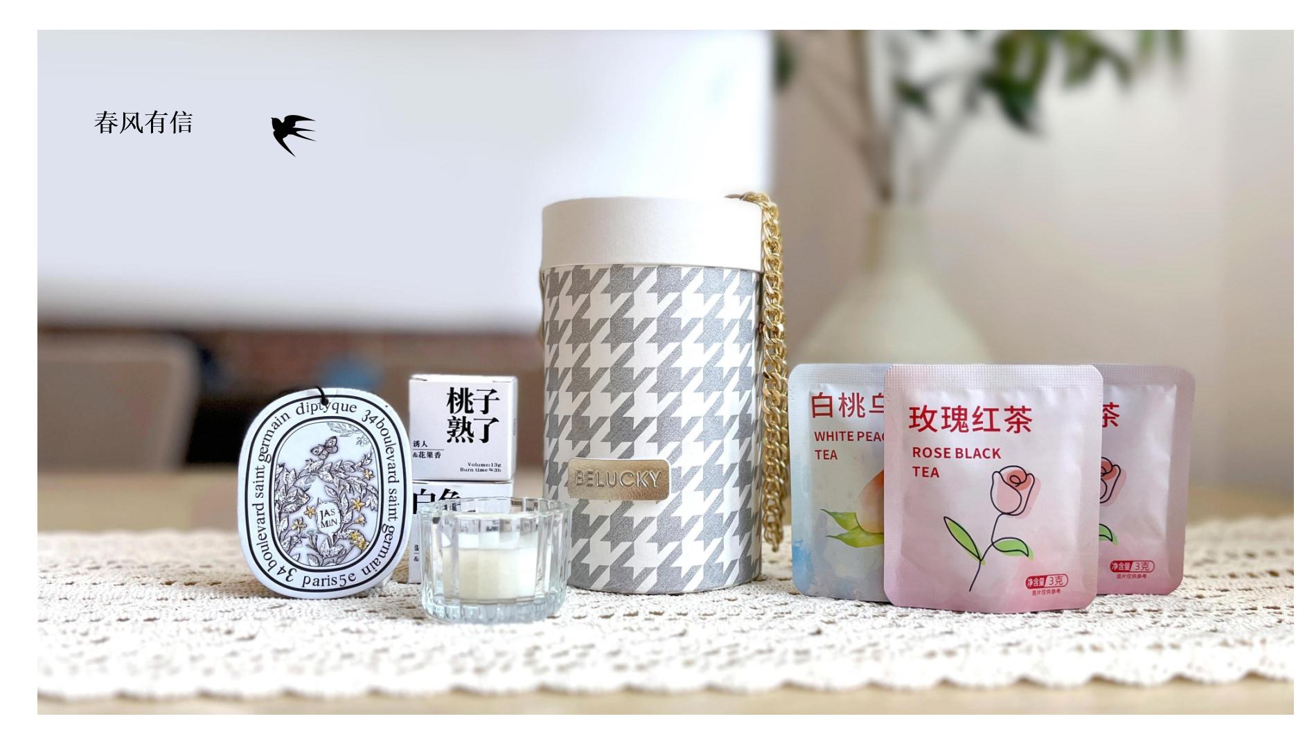 • 春風有信手提禮盒藏詩蠟燭燭臺花茶茶包香薰掛飾