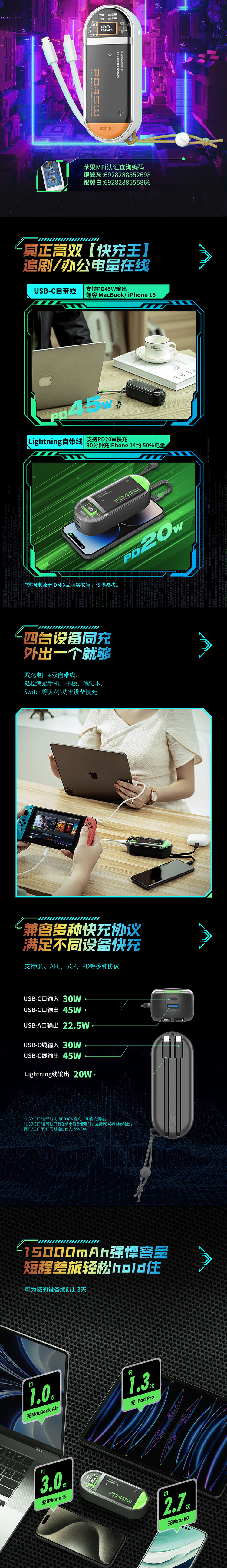 首頁(yè) > 全部禮品 > 電子數(shù)碼 > 移動(dòng)電源 > IDMIX 充電寶自帶雙線PD45W快充15000毫安時(shí)MFi認(rèn)證適用于蘋(píng)果華為Mate60Pro小米手機(jī)平板筆記本電腦