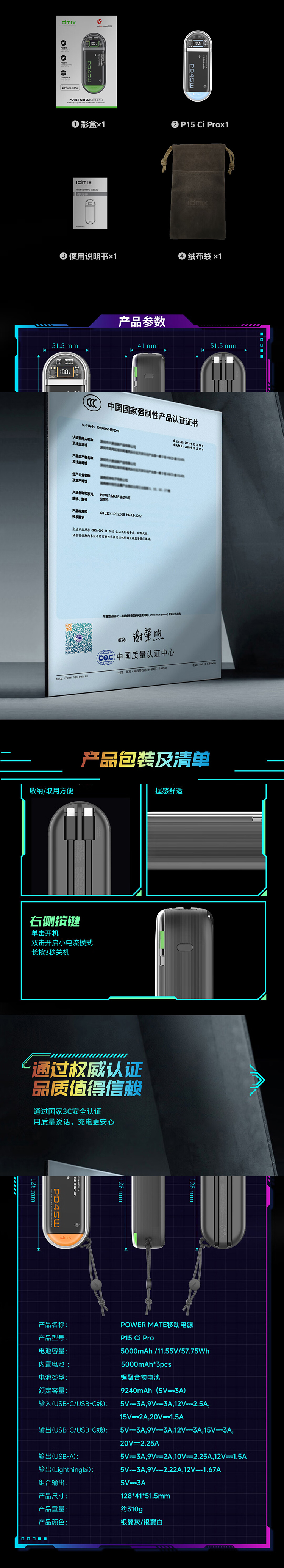 • IDMIX 充電寶自帶雙線PD45W快充15000毫安時(shí)MFi認(rèn)證適用于蘋(píng)果華為Mate60Pro小米手機(jī)平板筆記本電腦