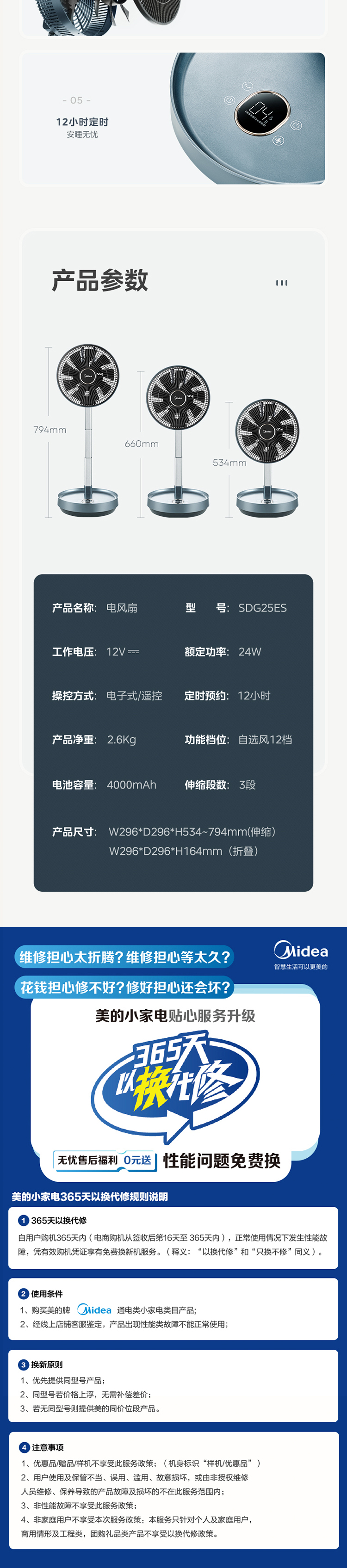 • 美的落地電風(fēng)扇折疊循環(huán)扇多功能輕音伸縮家用戶外露營充電臺式