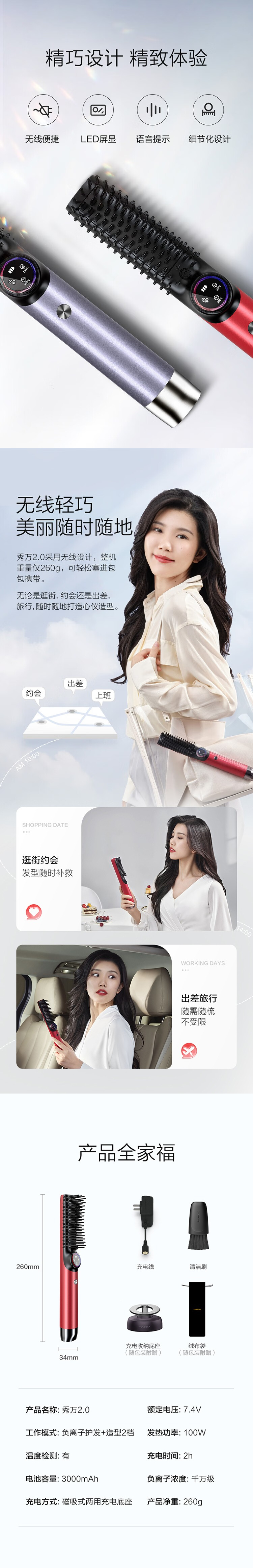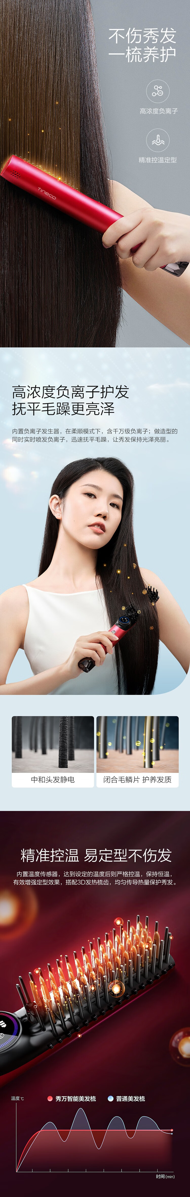 添可(TINECO) 智能無線直發(fā)梳秀萬2.0負(fù)離子不傷發(fā)神器卷發(fā)棒美發(fā)造型梳