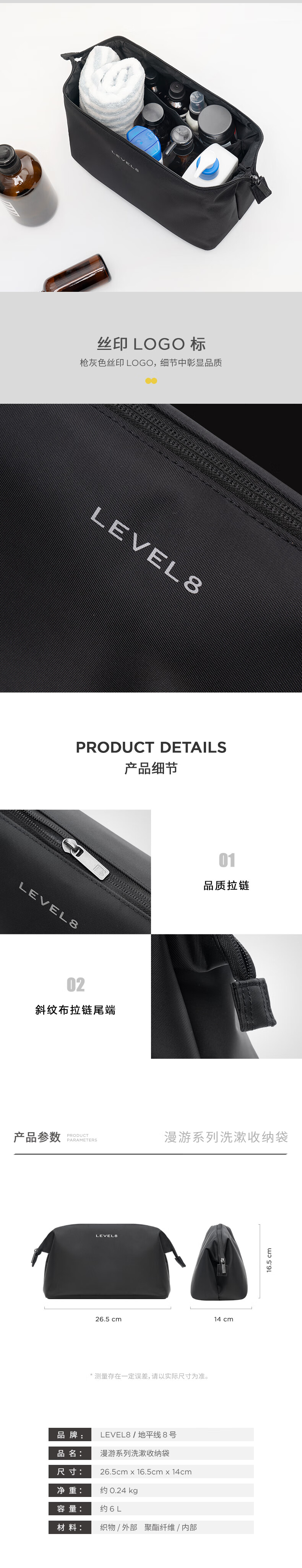 • 地平線8號(LEVEL8)便攜收納洗漱包 充電器電源線數(shù)碼配件包袋黑色