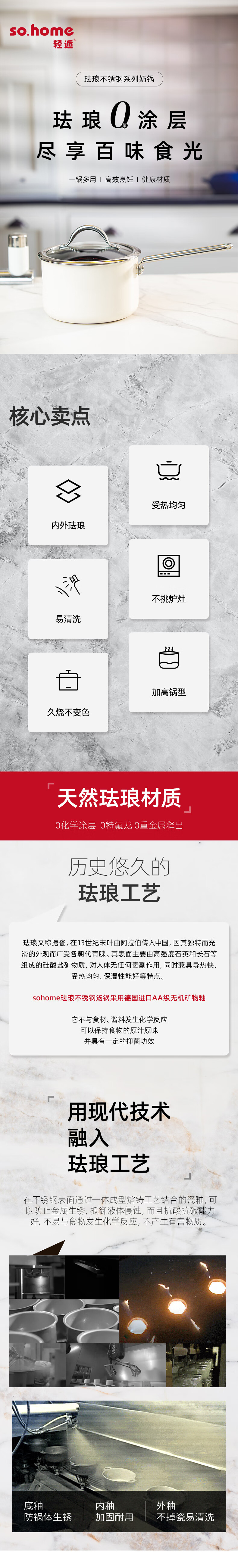 • so.home梵音琺瑯搪瓷輔食單柄奶鍋泡面鍋家用小湯鍋多功能煮面鍋琺瑯奶鍋