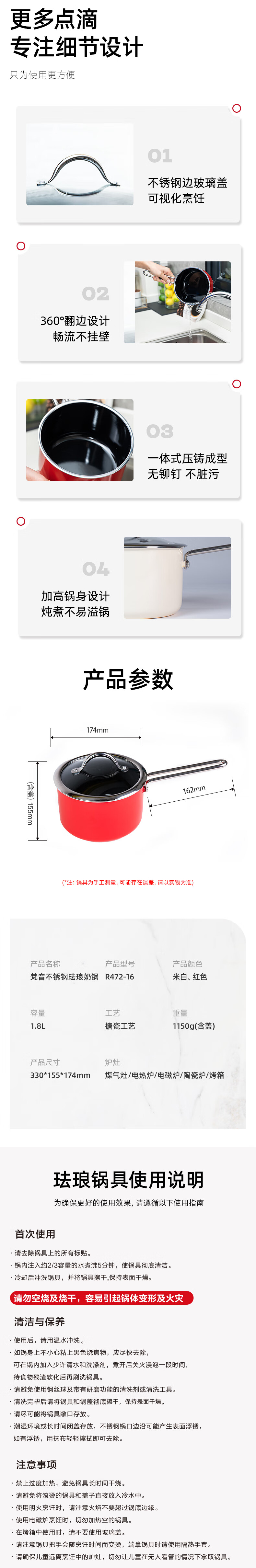 首頁 > 全部禮品 > 家居家電 > 廚房餐具 > so.home梵音琺瑯搪瓷輔食單柄奶鍋泡面鍋家用小湯鍋多功能煮面鍋琺瑯奶鍋