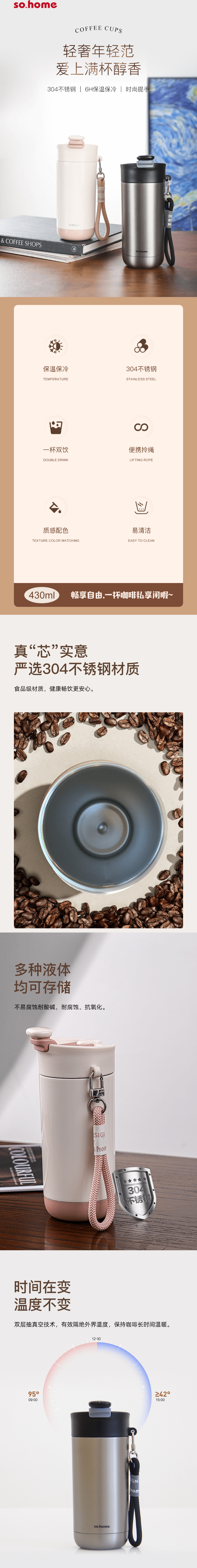 so.home靈弧咖啡杯咖啡保溫杯隨手杯不銹鋼便攜式隨行杯精致網(wǎng)紅咖啡杯