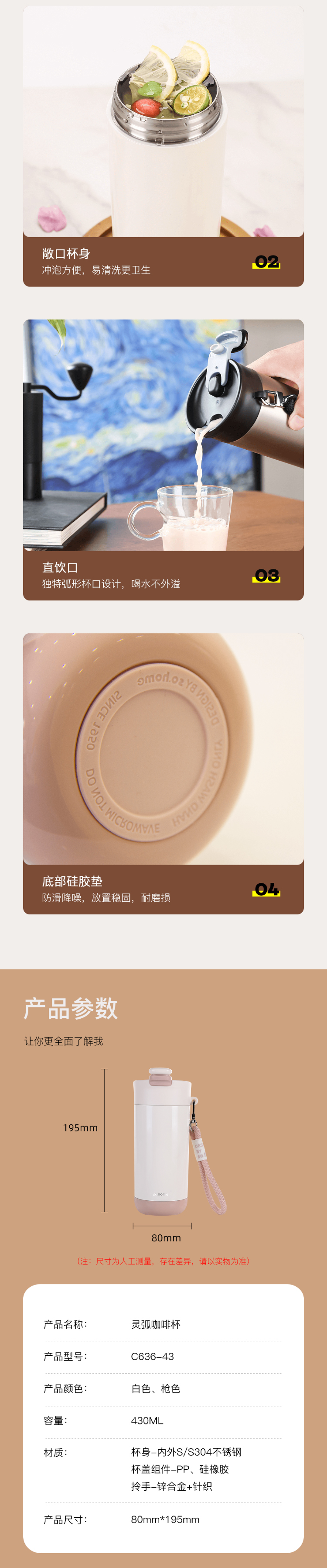 • so.home靈弧咖啡杯咖啡保溫杯隨手杯不銹鋼便攜式隨行杯精致網(wǎng)紅咖啡杯
