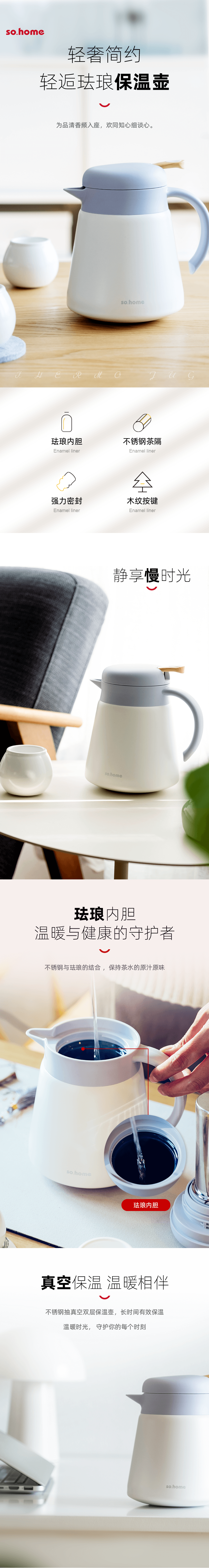 • so.home保溫壺家用熱水壺便攜式暖燜茶壺泡茶壺琺瑯保溫暖瓶
