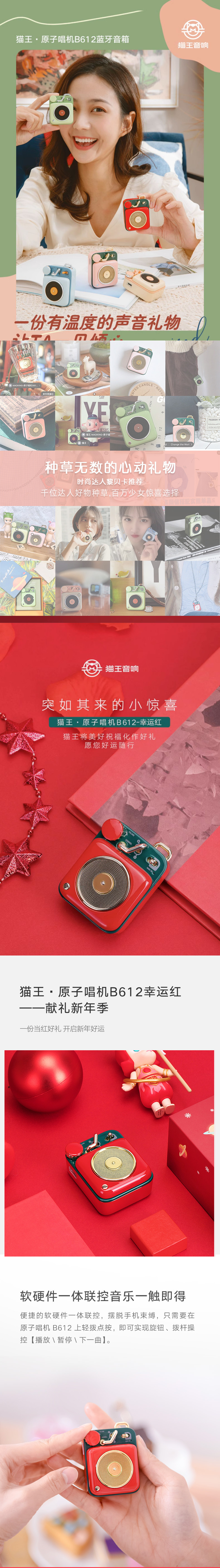 首頁 > 全部禮品 > 電子數(shù)碼 > 音響 > 貓王音響原子唱機(jī)復(fù)古藍(lán)牙小音箱響禮盒結(jié)婚送女生日新年伴手禮物