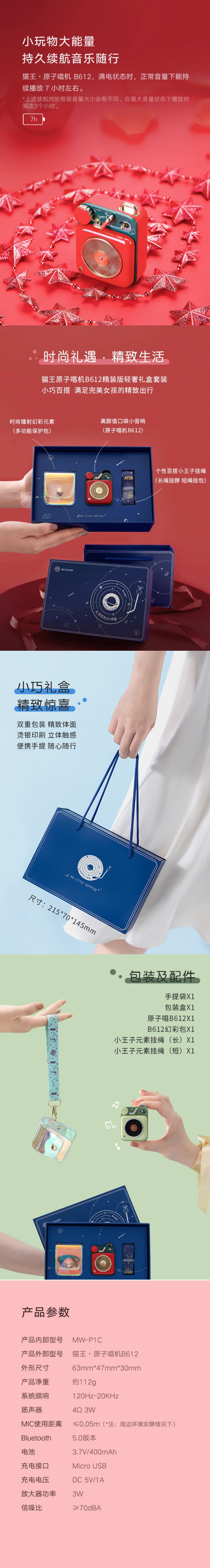 貓王音響原子唱機(jī)復(fù)古藍(lán)牙小音箱響禮盒結(jié)婚送女生日新年伴手禮物