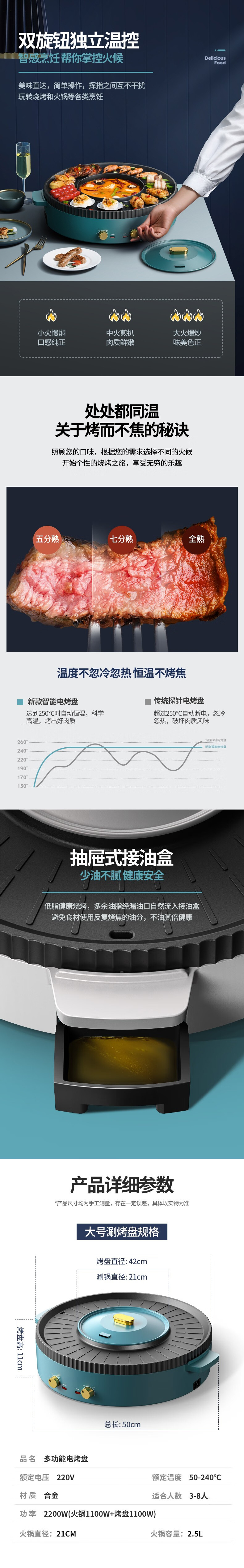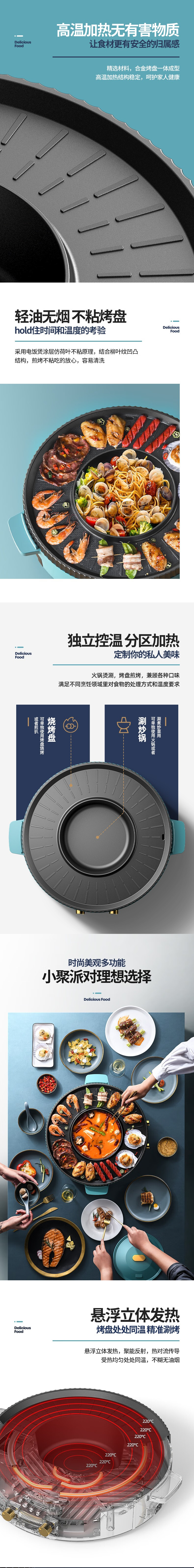 德博萊涮火鍋烤肉一體鴛鴦火鍋 德博萊多功能電烤盤