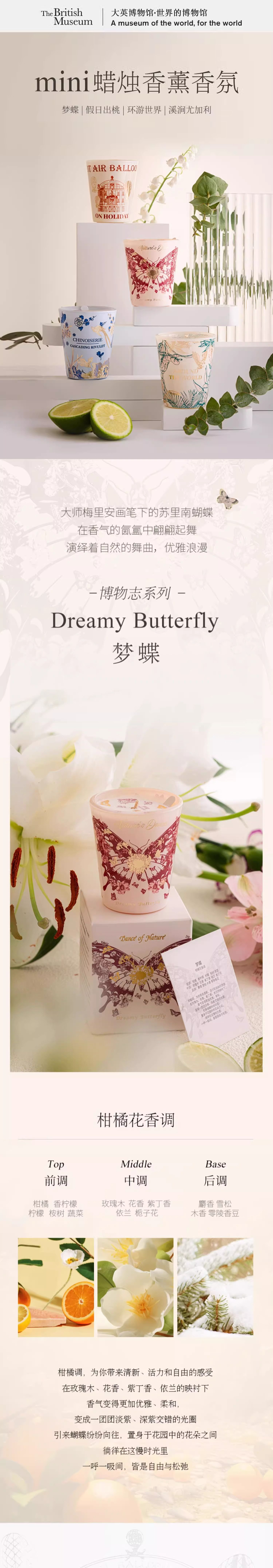 • 大英博物館文創(chuàng)蝴蝶mini香薰蠟燭家居臥室香氛禮盒套裝禮物女生