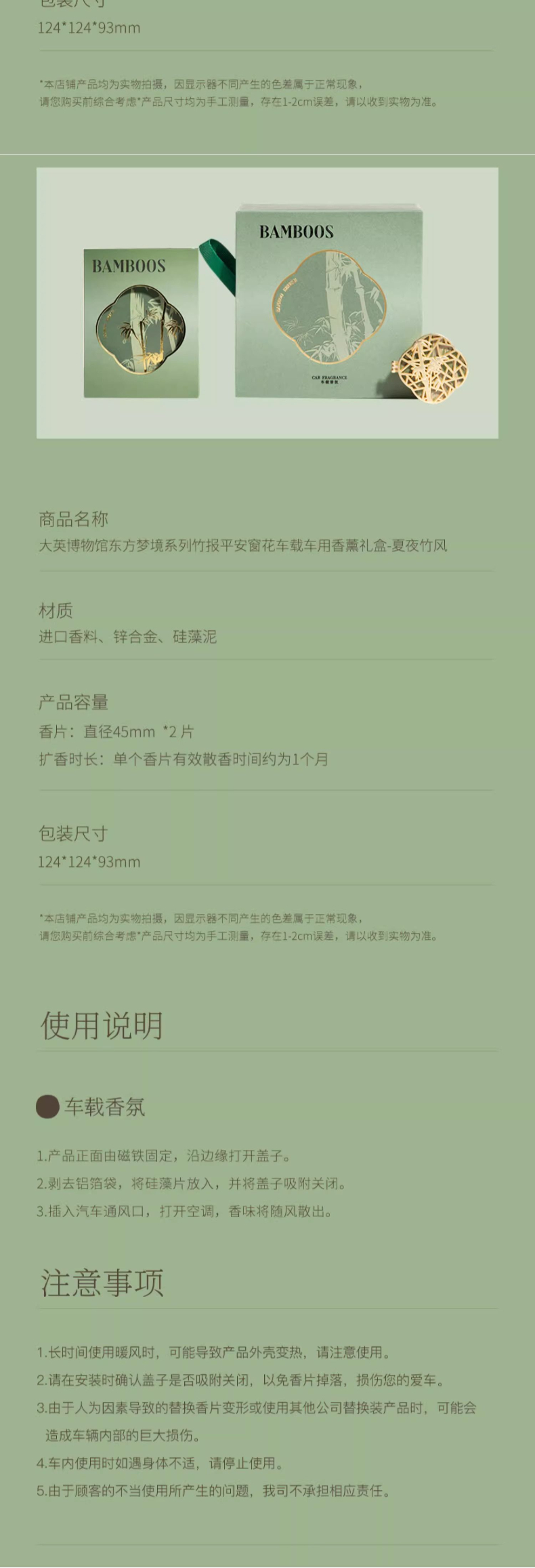 • 大英博物館竹風車載香薰出風口汽車香氛車內飾品擺件裝飾高級感