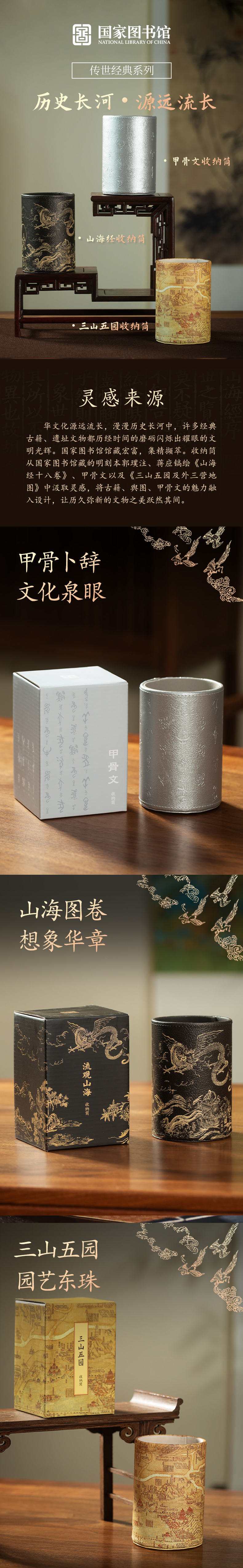 國家圖書館山海經(jīng)甲骨文文創(chuàng)大容量收納筆筒文創(chuàng)意送男女生日禮物
