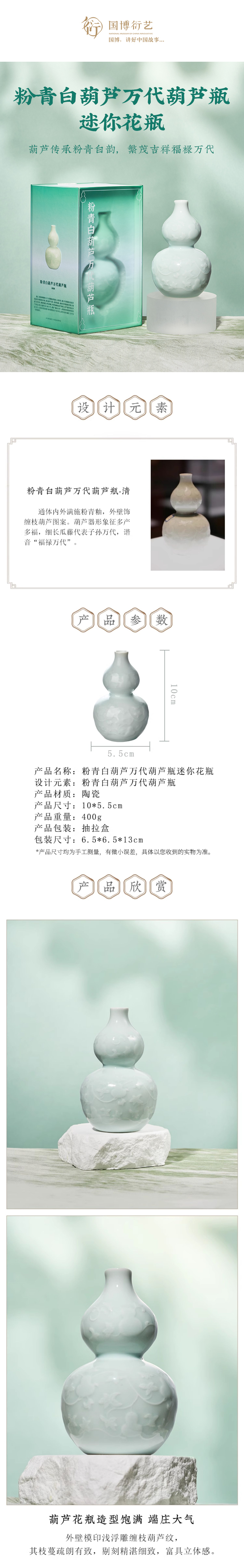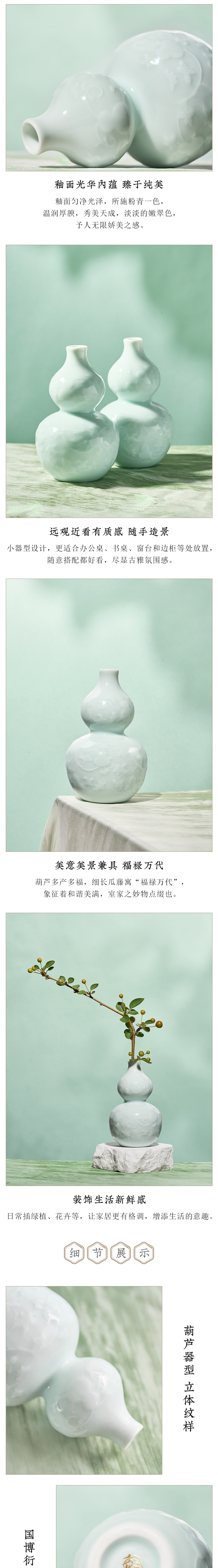 • 中國國家博物館粉青白葫蘆萬代葫蘆瓶迷你花瓶創(chuàng)意擺件裝飾小禮物