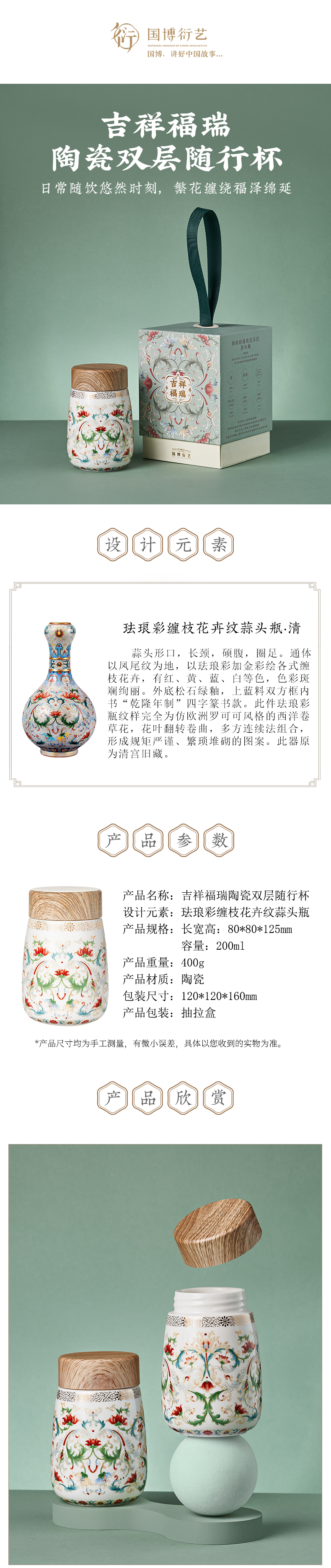 中國國家博物館吉祥福瑞陶瓷雙層隨行杯高顏值便攜可愛女生日禮物