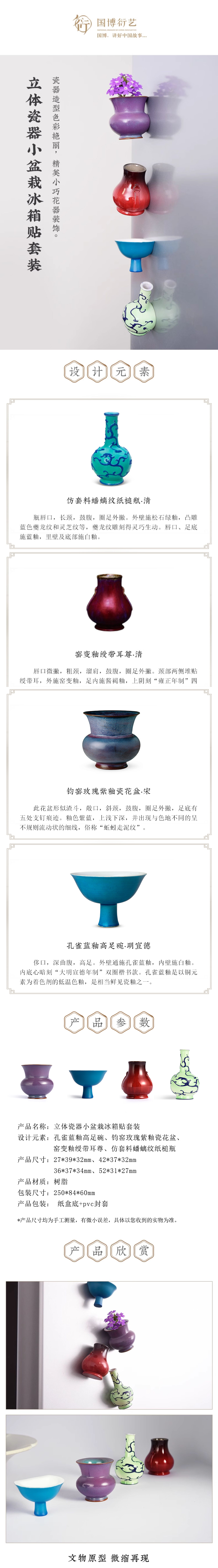 • 中國國家博物館立體瓷器小盆栽冰箱貼手工家居飾品文創(chuàng)禮品