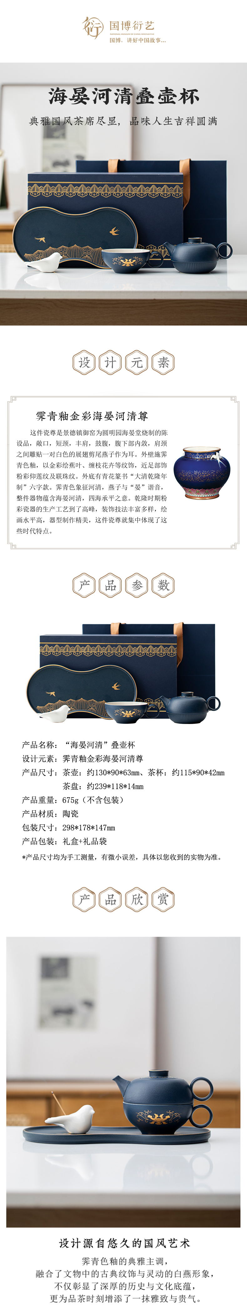 首頁 > 全部禮品 > 水具禮品 > 茶具套裝 > 中國國家博物館海晏河清疊壺杯創(chuàng)意杯子高端國風(fēng)文創(chuàng)送朋友禮物