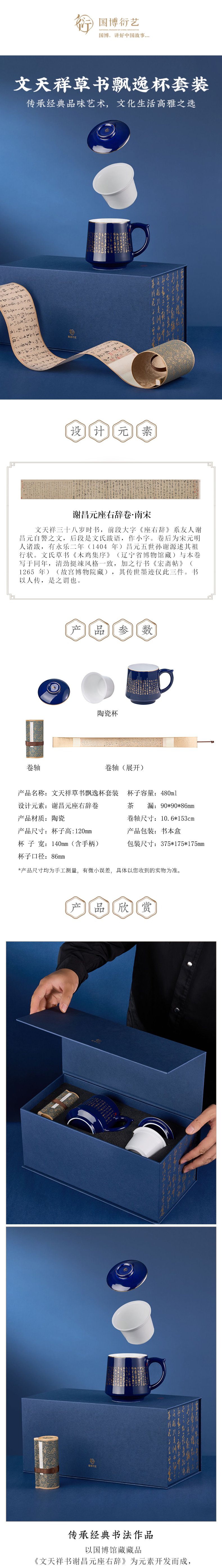 • 中國(guó)國(guó)家博物館文天祥草書(shū)飄逸杯套裝茶杯創(chuàng)意國(guó)風(fēng)生日送長(zhǎng)輩禮物