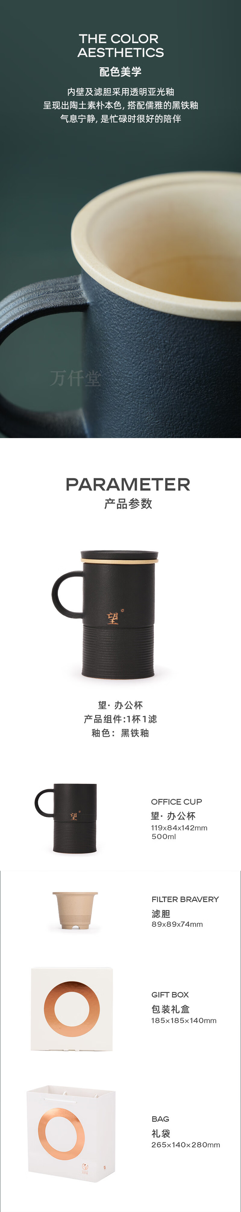 • 萬仟堂(Edenus)高檔辦公杯 陶瓷杯男士水杯茶水分離馬克杯帶濾網(wǎng)