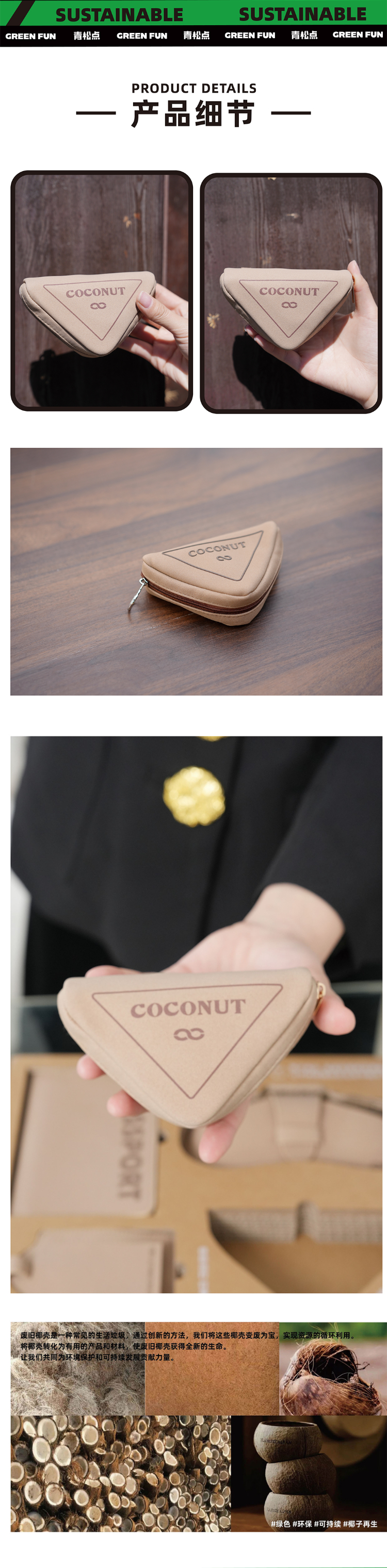 • 青松點環(huán)保設計椰子殼材質(zhì)耳機保護套小巧小包大容量便攜百搭隨身零錢包耳機收納包