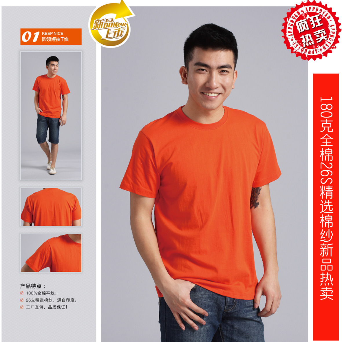 本產(chǎn)品原料棉紗來自印度,高配26支棉紗??酥?80克!布面光潔無毛球??s水率底。染色為活性染